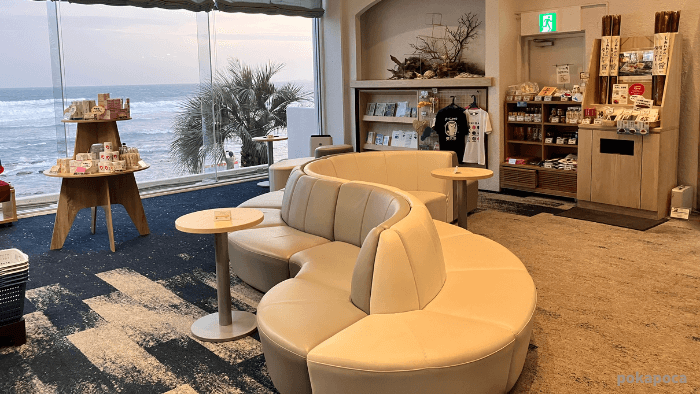 ロビーは特別豪華というわけではありませんが、海を一望できる開放的な作りになっています。