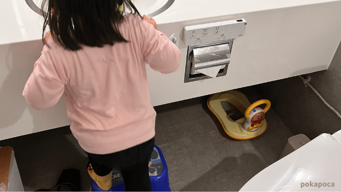 子どもが自分で手洗い、うがいができるように、踏み台も用意されていて、助かりました。