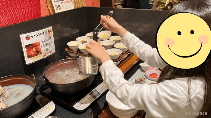 特に長女が自分でラーメンを作れるコーナーに夢中になり、3回もおかわり。